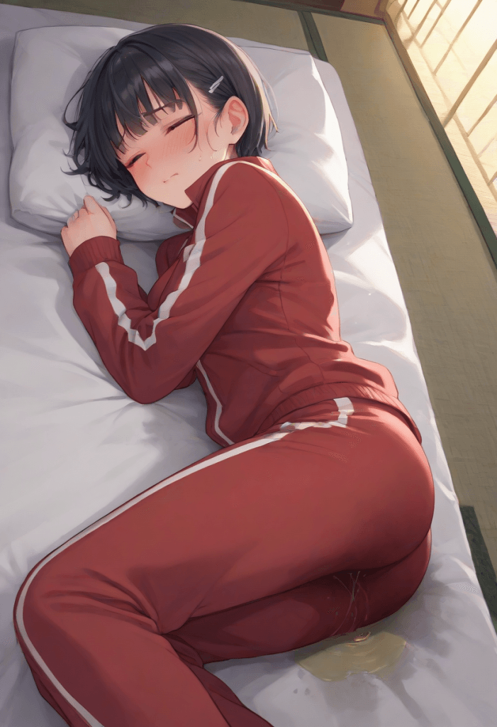 こちらは、過去のAIお漏らし・おねしょ絵ですのでよろしければ見てみてください。↓